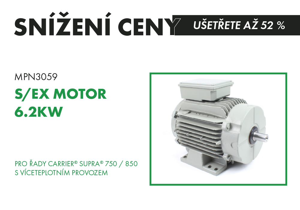 Vyměňovací motor Myriad navržený pro víceteplotní jednotky Carrier® Supra® 750 a 850, což nabízí cenově dostupnou alternativu k OEM 54-60030-03.