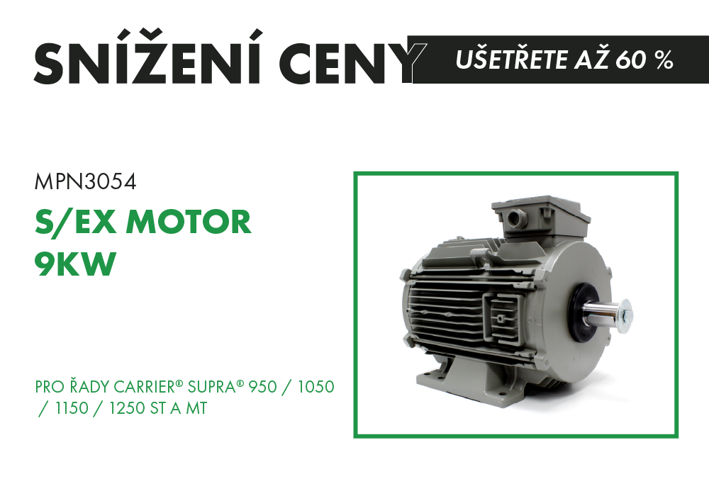 Vyměňovací motor Myriad navržený pro víceteplotní jednotky Carrier® Supra® 750 a 850, což nabízí cenově dostupnou alternativu k OEM 54-60030-03.