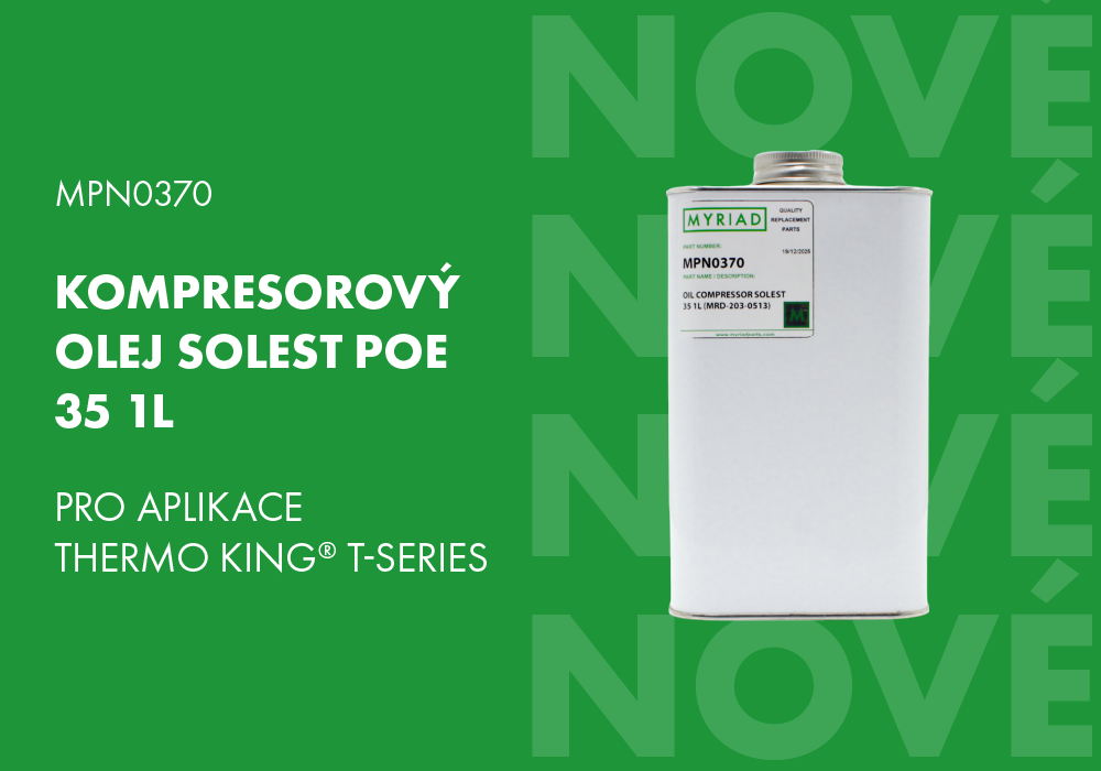 Kompresorový olej Myriad vhodný pro aplikace Thermo King®, podporující správné mazání a výkon systému podle OEM specifikace 203-0513.
