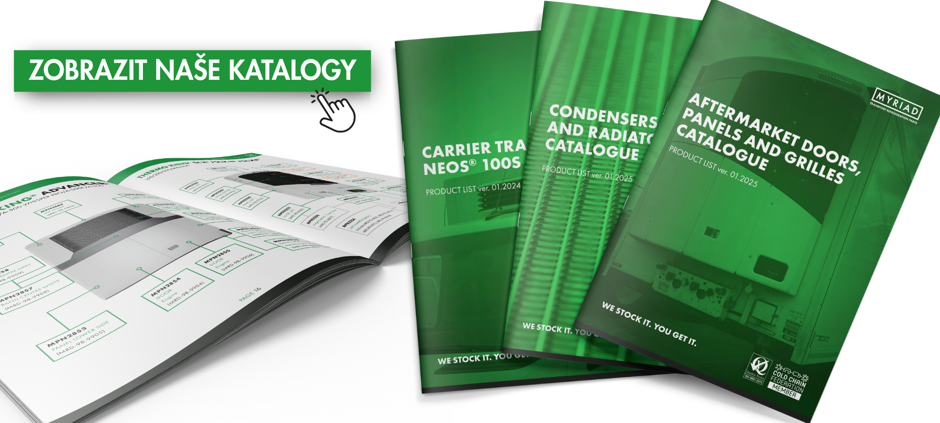 Myriad dodává díly navržené tak, aby pasovaly na všechny hlavní systémy supermarketových dodávek, a nyní podporuje originální díly GAH® přímo ze skladu. To dává supermarketům jeden důvěryhodný kontaktní bod pro každé skladiště a každý typ chlazeného vozu.
